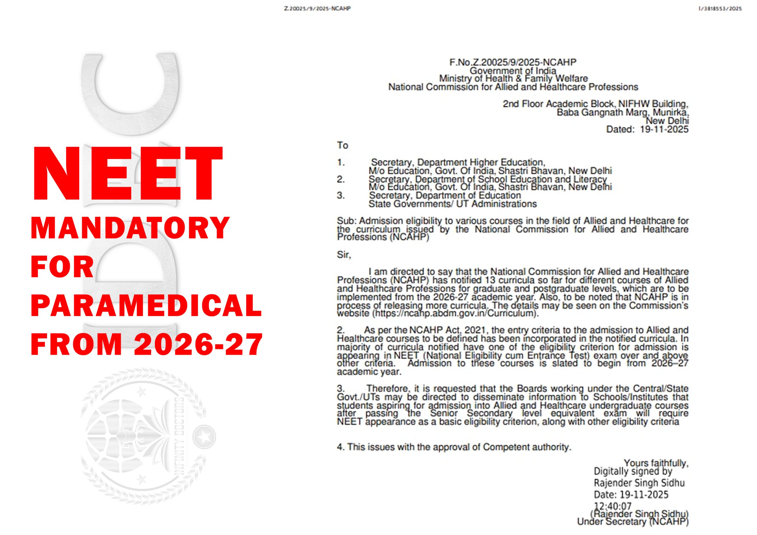 NEET Now Mandatory for Allied and Healthcare Courses from 2026–27